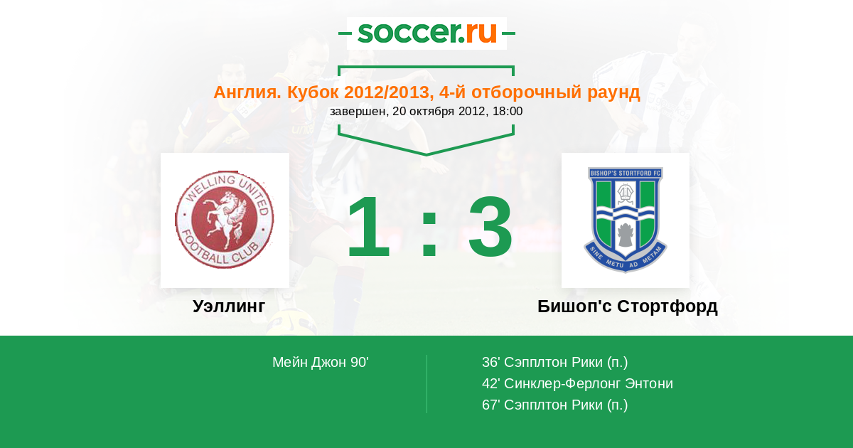 Протокол матча Уэллинг против Бишоп'c Стортфорд