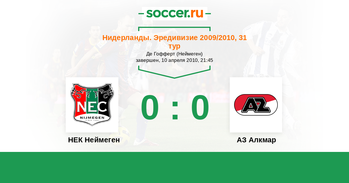 Нидерланды. Эредивизи 19.09.2010 НЕК Неймеген Логотип футбольный клуб НЕК Неймеген 0:1 Логотип футбольный клуб АЗ Алкмар АЗ Алкмар