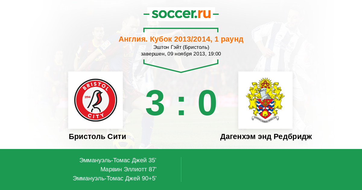 Протокол матча Бристоль Сити против Дагенхэм энд Редбридж