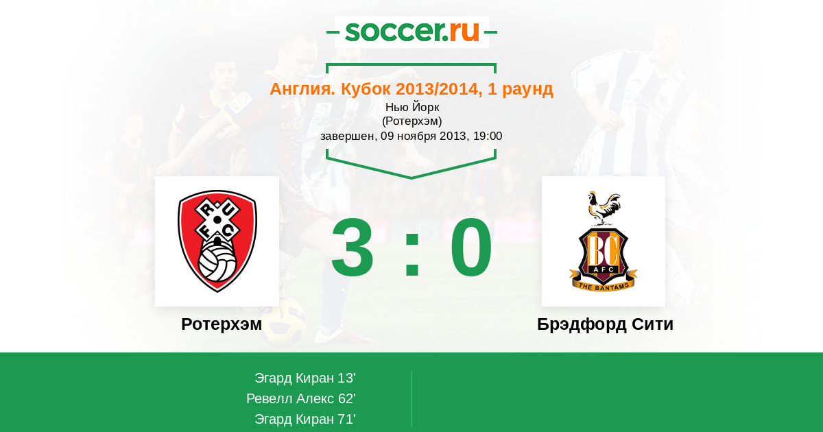 Протокол матча Ротерхэм против Брэдфорд Сити