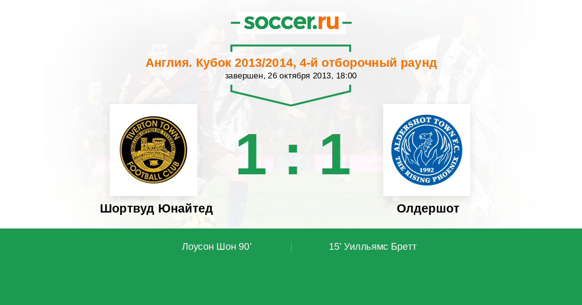 Протокол матча Шортвуд Юнайтед против Олдершот