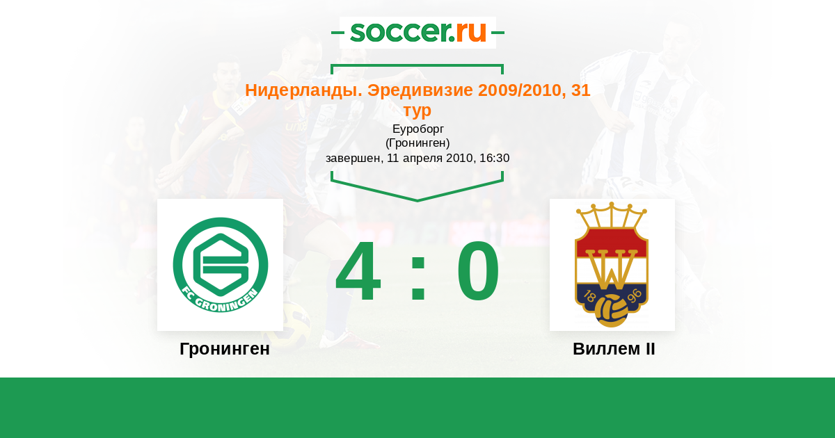 Нидерланды. Эредивизи 26.04.2009 Гронинген Логотип футбольный клуб Гронинген 0:0 Логотип футбольный клуб Виллем II (Тилбург) Виллем II