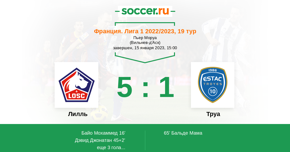 Протокол матча Лилль против Труа