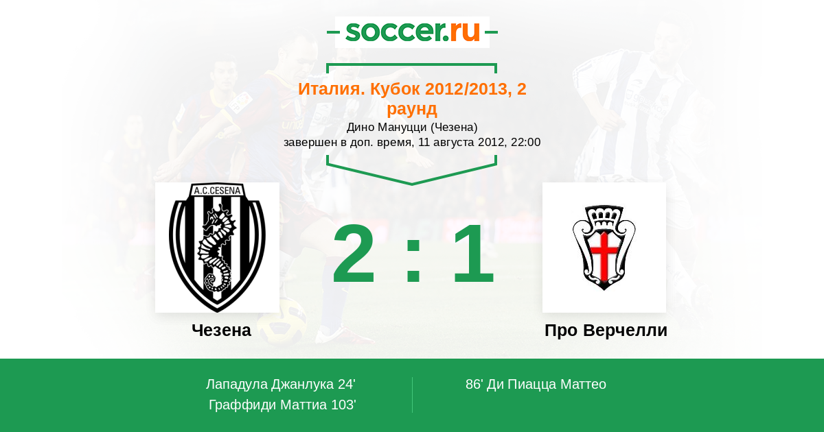 Протокол матча Чезена против Про Верчелли