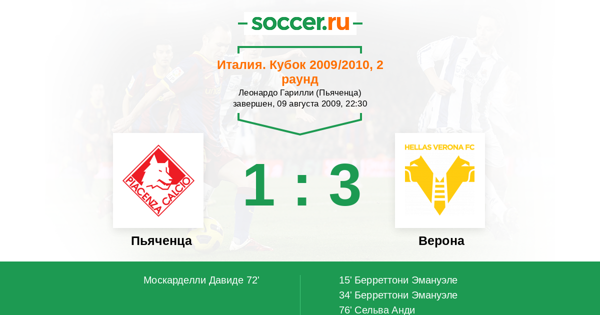 Протокол матча Пьяченца против Верона