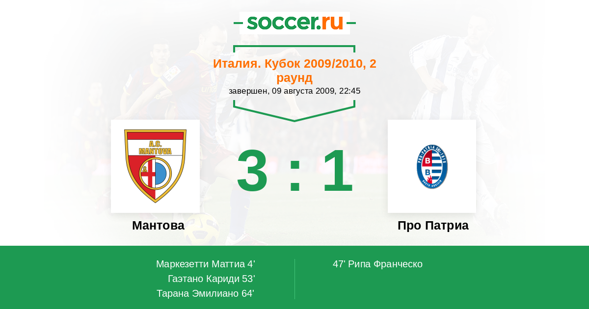 Протокол матча Мантова против Про Патриа