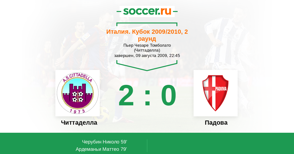 Протокол матча Читтаделла против Падова