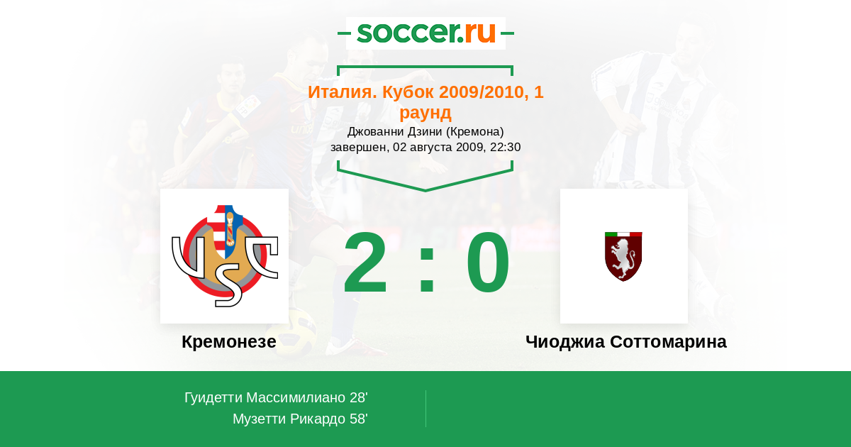 Протокол матча Кремонезе против Чиоджиа Соттомарина