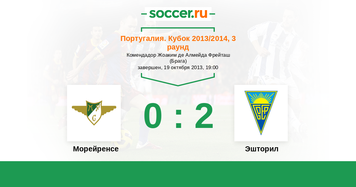 Португалия. Кубок 19.10.2013 Морейренcе Логотип футбольный клуб Морейренcе (Морейра-де-Конегуш) 0:2 Логотип футбольный клуб Эшторил Эшторил