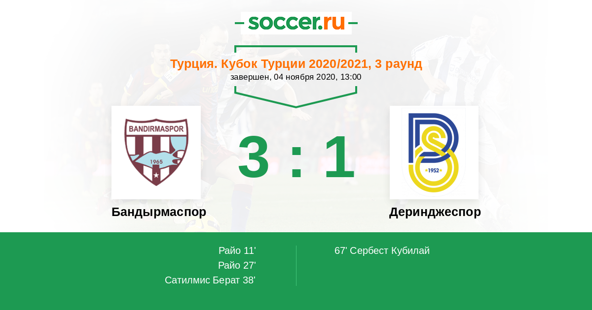 Протокол матча Бандырмаспор против Деринджеспор