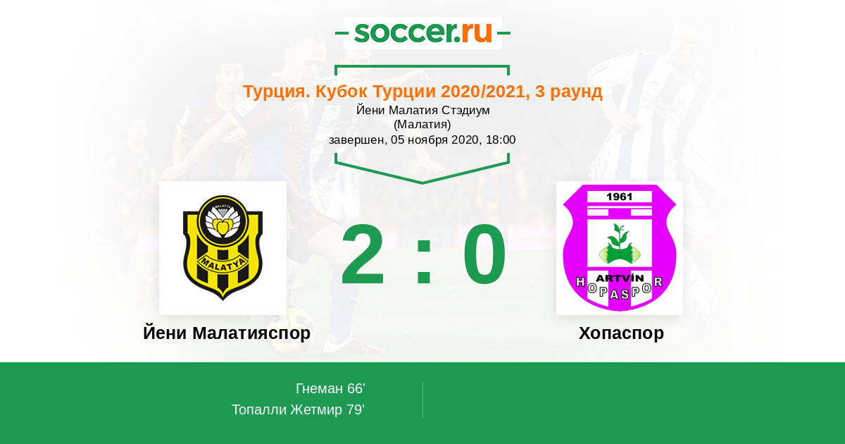 Протокол матча Йени Малатияспор против Хопаспор