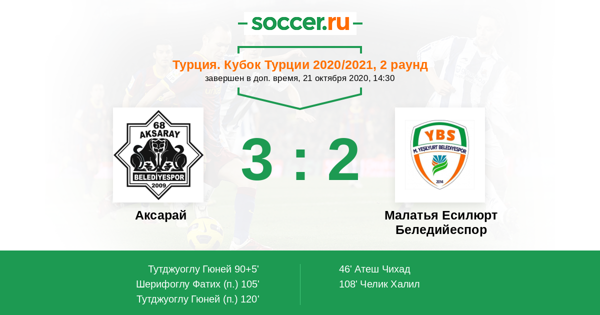 Протокол матча Аксарай против Малатья Есилюрт Беледийеспор