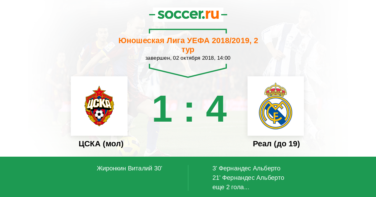 Протокол матча ЦСКА (мол) против Реал (до 19)
