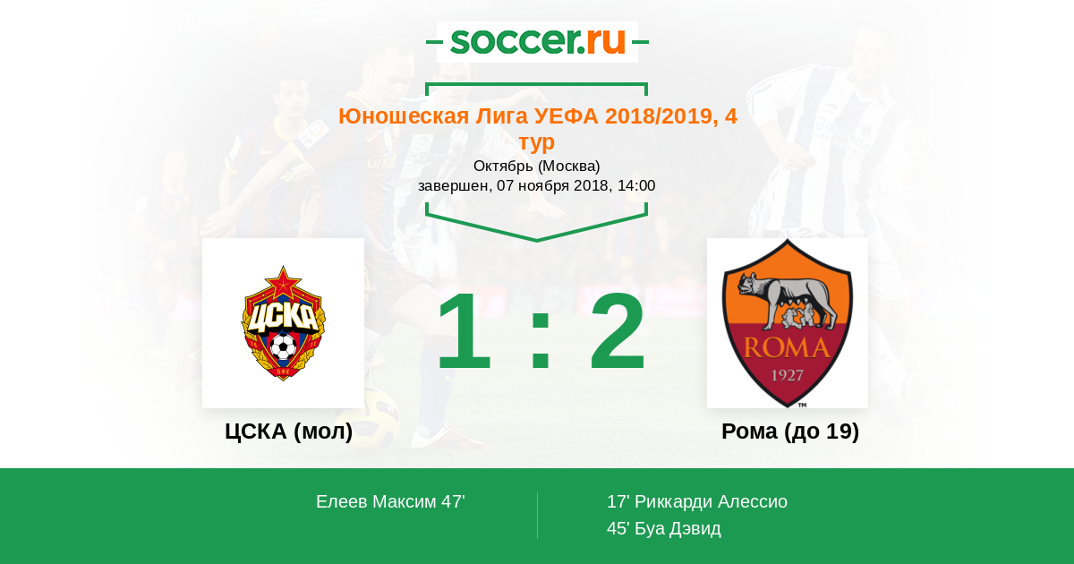 Протокол матча ЦСКА (мол) против Рома (до 19)