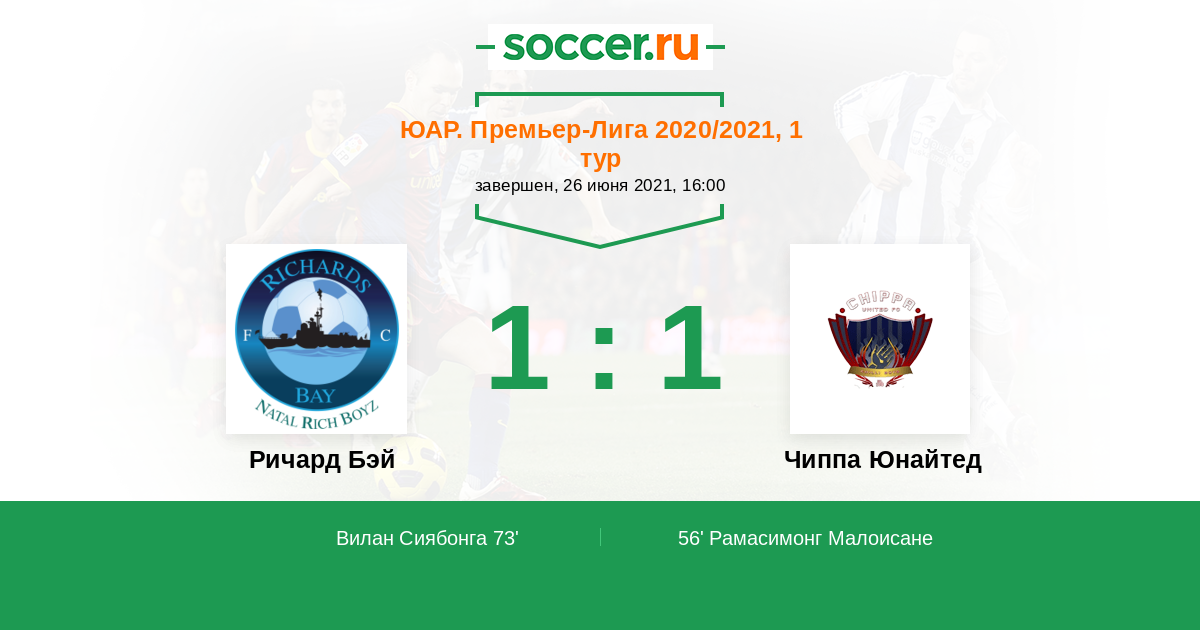 Протокол матча Ричард Бэй против Чиппа Юнайтед