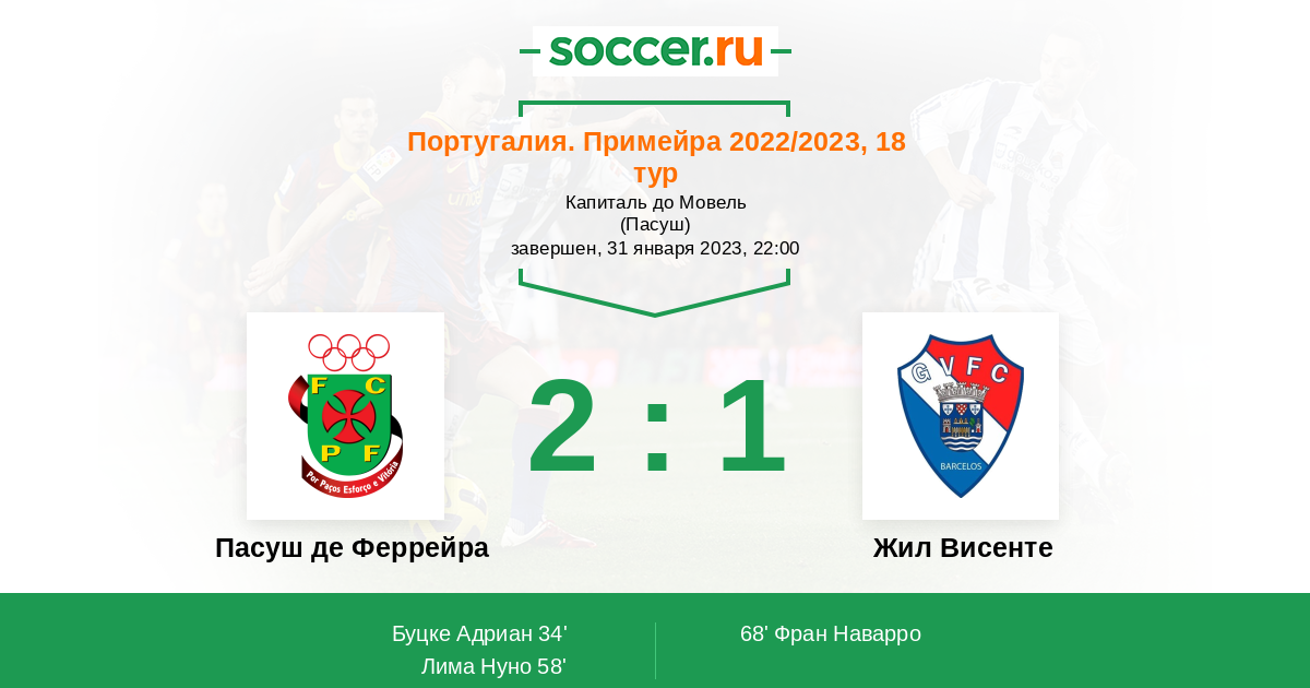 Протокол матча Пасуш де Феррейра против Жил Висенте