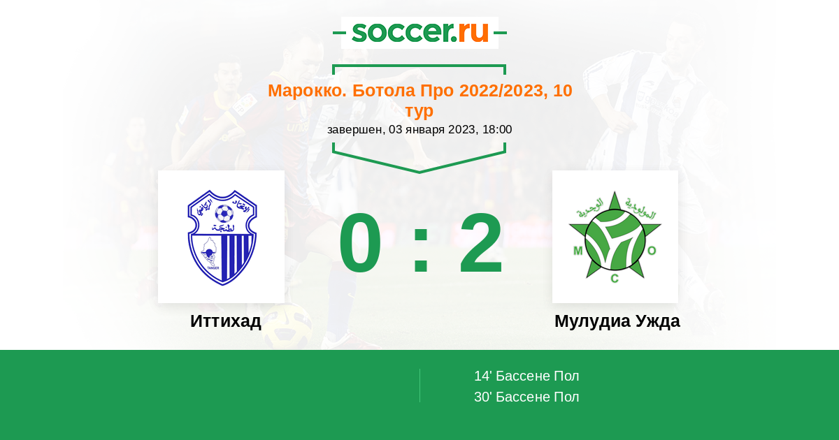 Протокол матча ИР Анже против Мулудиа Ужда