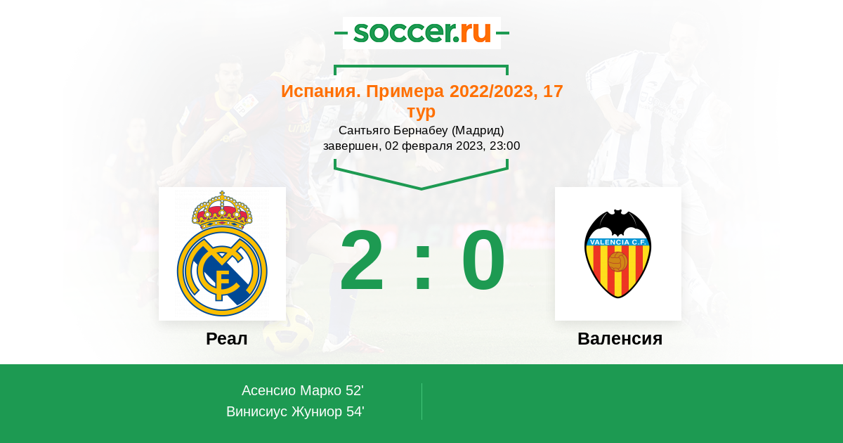 Протокол матча Реал против Валенсия