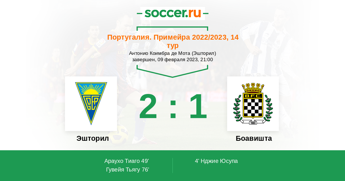 Протокол матча Эшторил против Боавишта