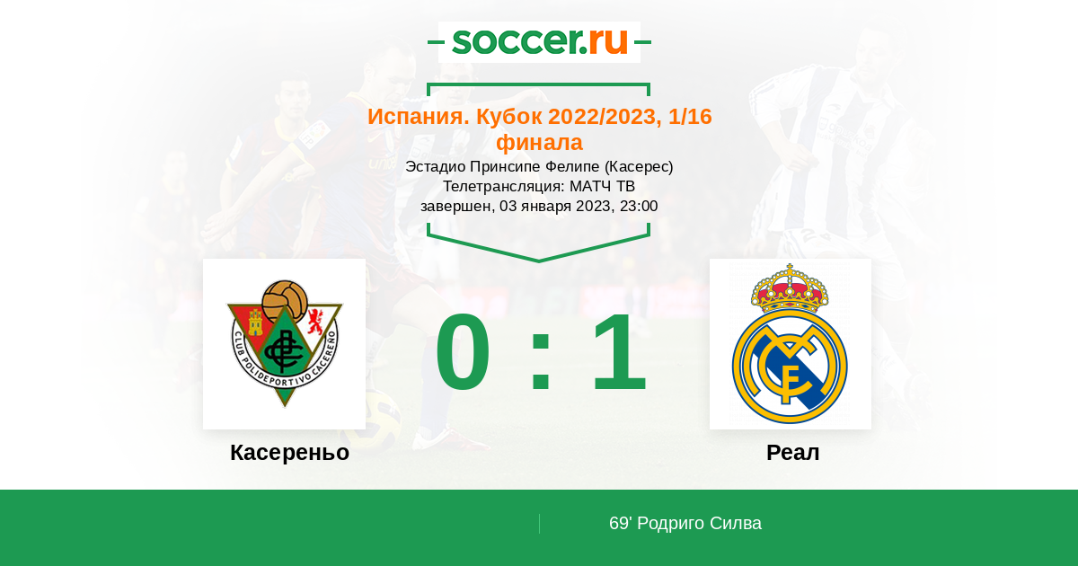 Протокол матча Касереньо против Реал