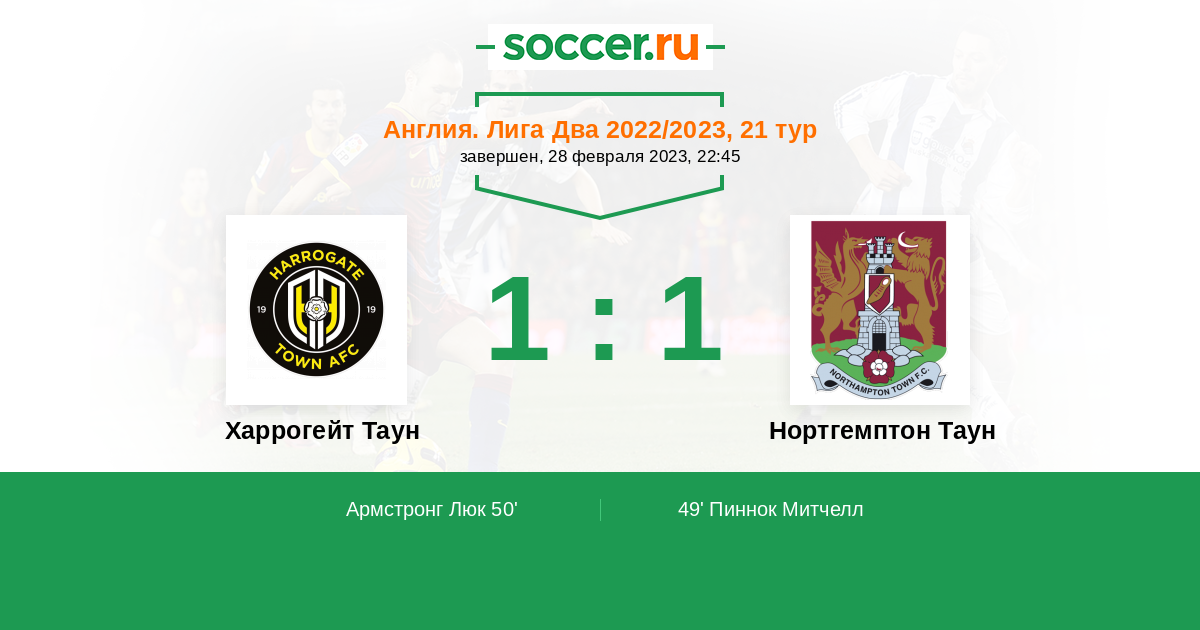 Протокол матча Харрогейт Таун против Нортгемптон Таун