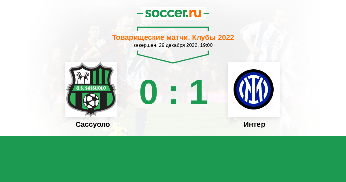 Италия. Серия А 20.02.2022 Интер Логотип футбольный клуб Интер (Милан) 0:2 Логотип футбольный клуб Сассуоло Сассуоло