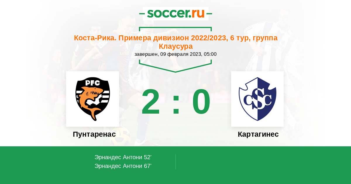 Протокол матча Пунтаренас против Картахинес
