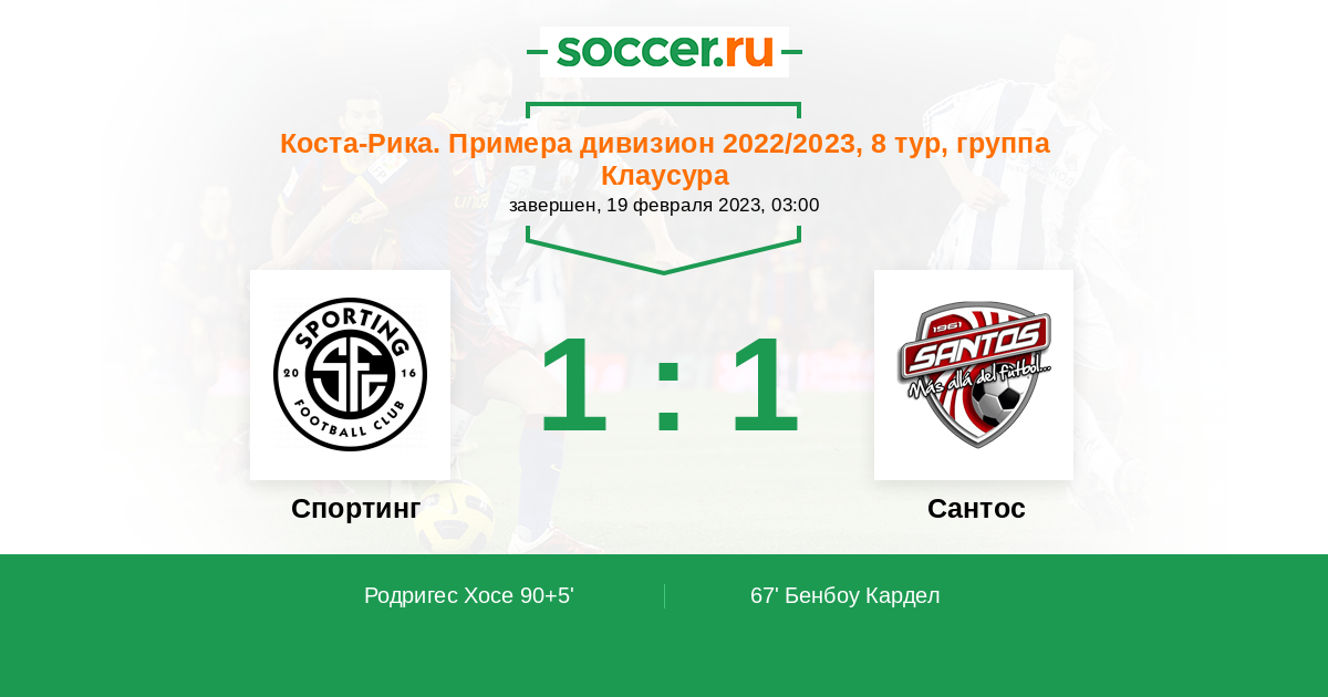 Протокол матча Спортинг Сан-Хосе против Сантос