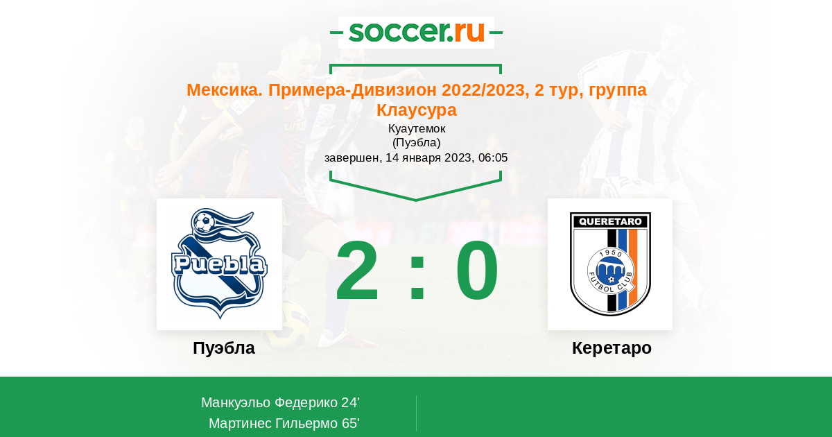 Протокол матча Пуэбла против Керетаро