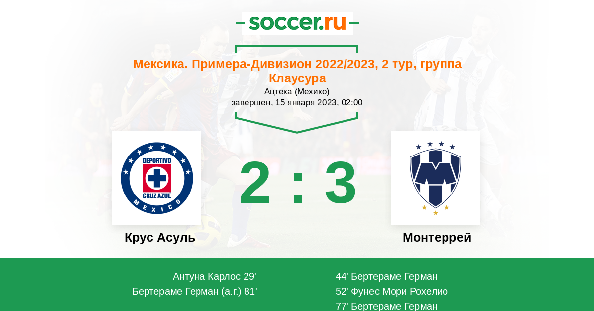 Протокол матча Крус Асуль против Монтеррей