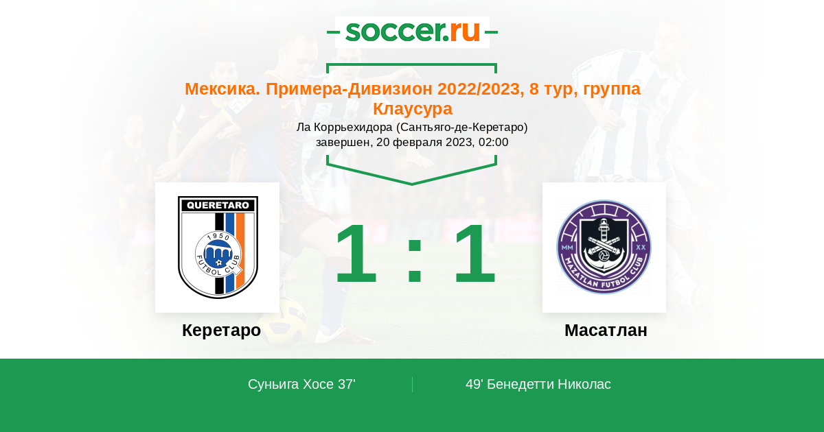Протокол матча Керетаро против Масатлан