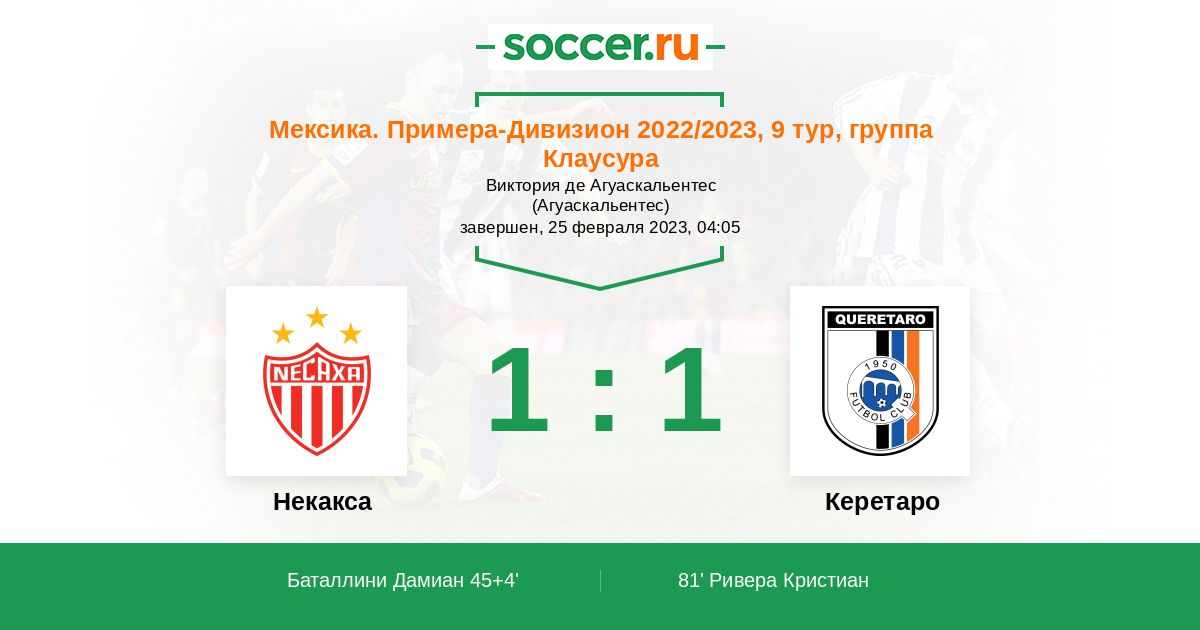 Протокол матча Некакса против Керетаро