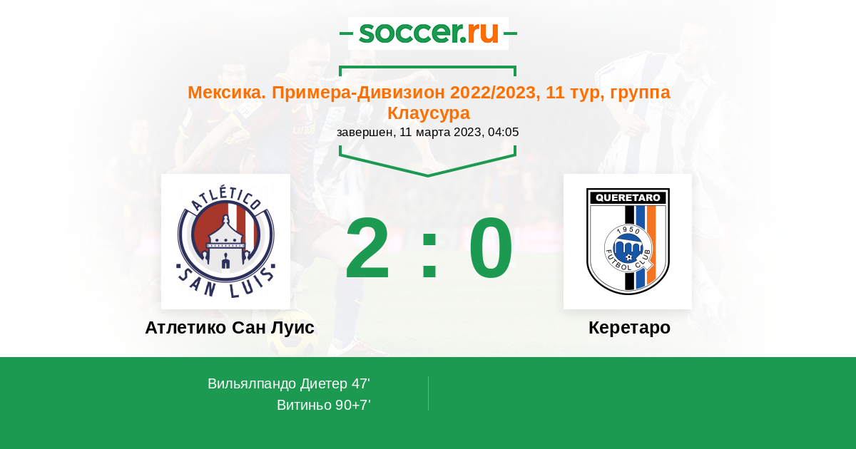 Протокол матча Атлетико Сан Луис против Керетаро