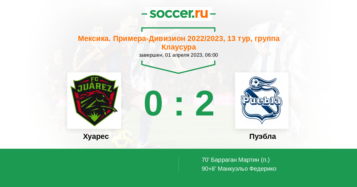 Протокол матча Хуарес против Пуэбла