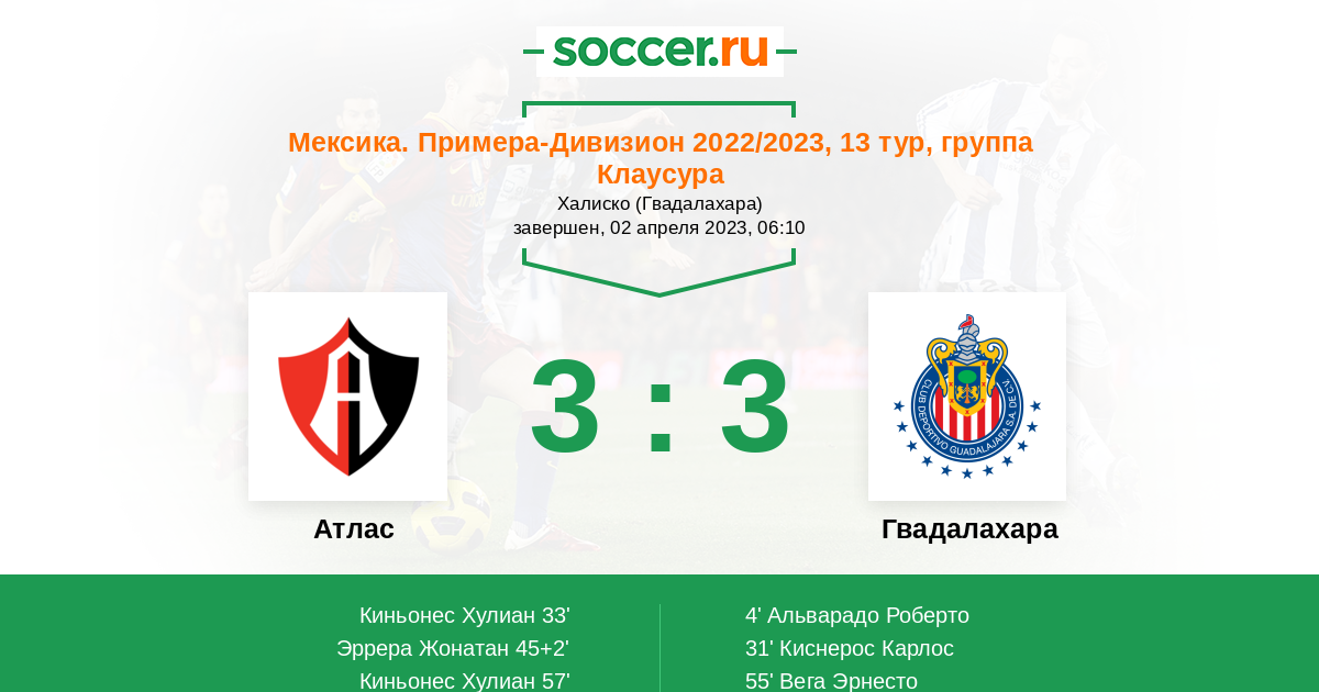 Гол45+2' (2:2) Эррера Жонатан (7) (Рейес Рикардо Луис (14))