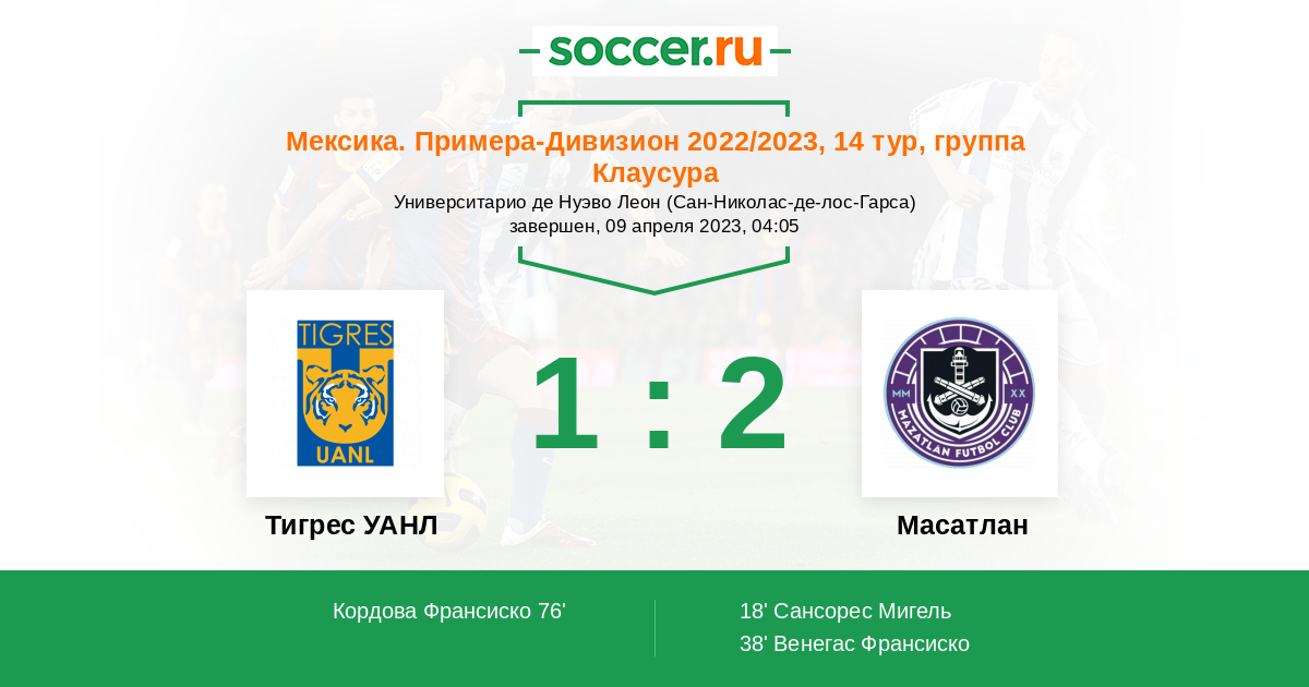 76' (1:2) Кордова Франсиско (17) (Ангуло Хесус (27))