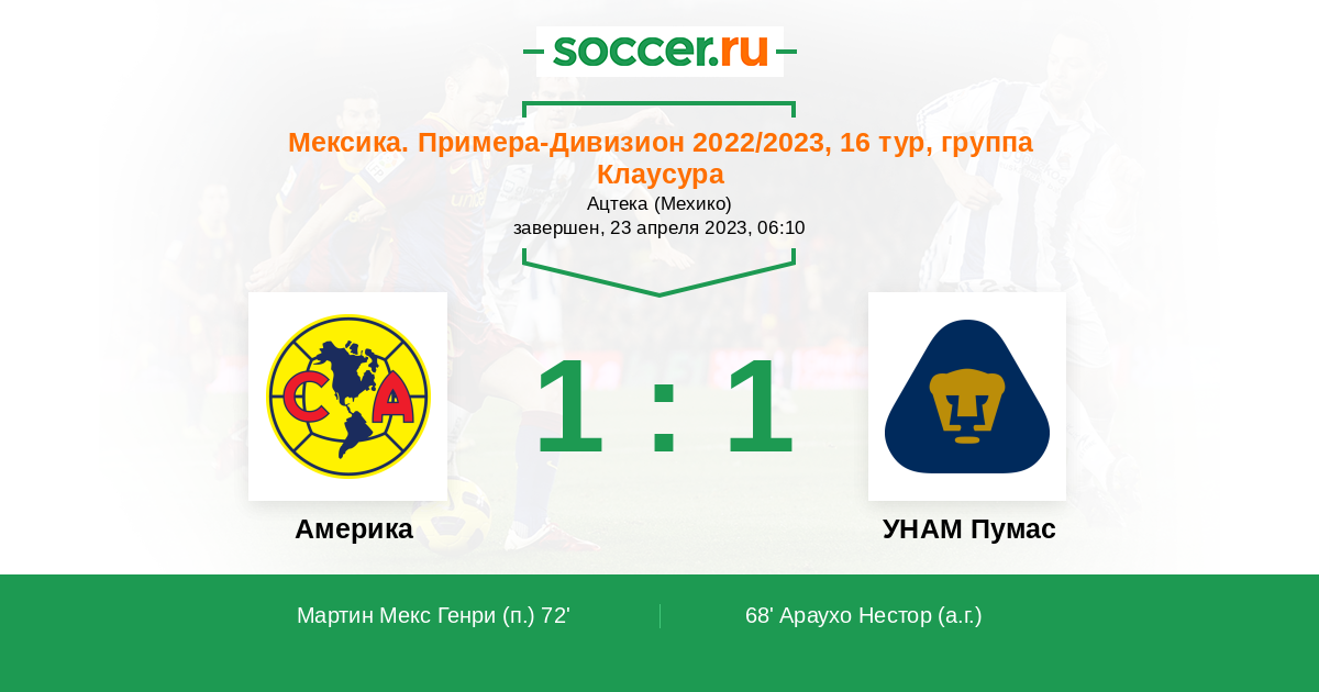 Протокол матча Америка против УНАМ Пумас
