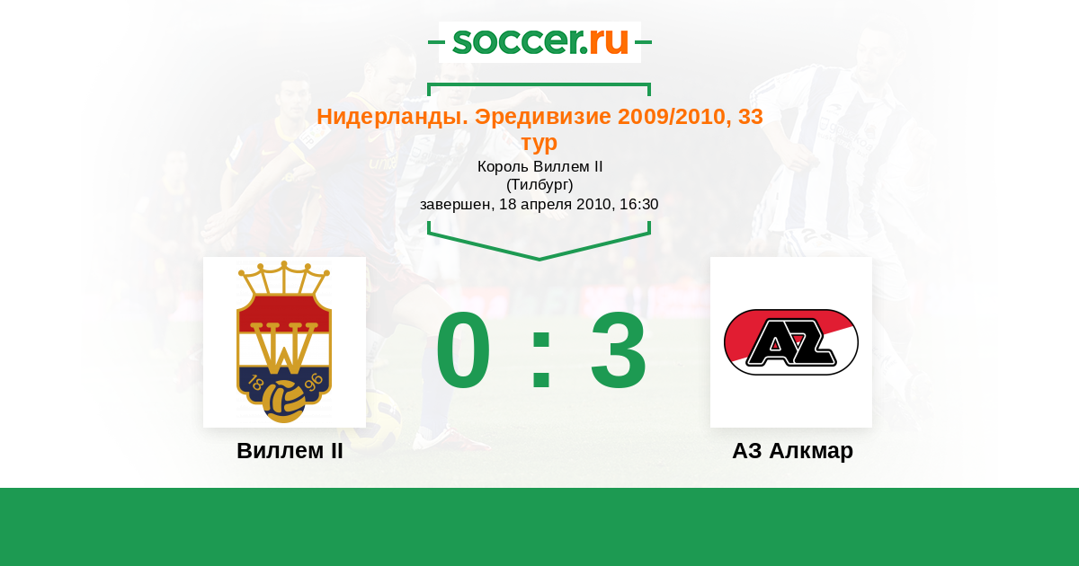 Нидерланды. Эредивизи 23.04.2011 Виллем II Логотип футбольный клуб Виллем II (Тилбург) 2:1 Логотип футбольный клуб АЗ Алкмар АЗ Алкмар