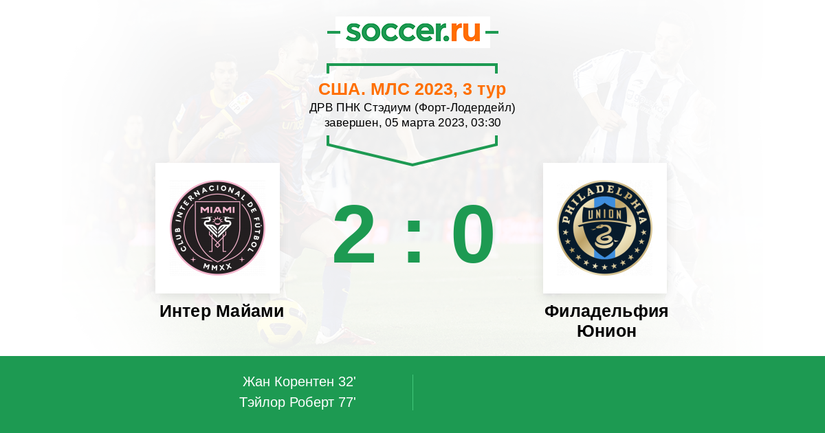 Протокол матча Интер Майами против Филадельфия Юнион