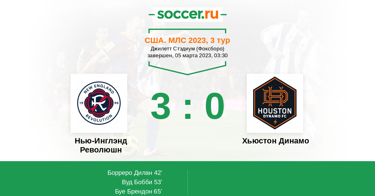 Протокол матча Нью-Инглэнд Революшн против Хьюстон Динамо