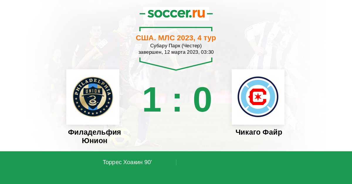 Протокол матча Филадельфия Юнион против Чикаго Файр