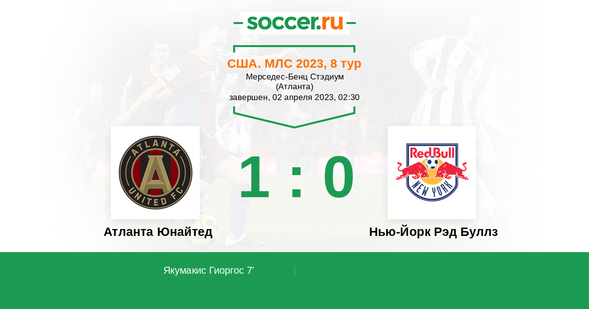Протокол матча Атланта Юнайтед против Нью-Йорк Рэд Буллз