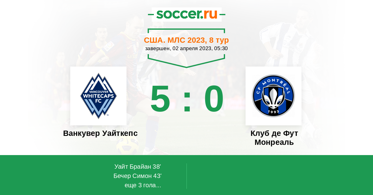 Протокол матча Ванкувер Уайткепс против Клуб де Фут Монреаль