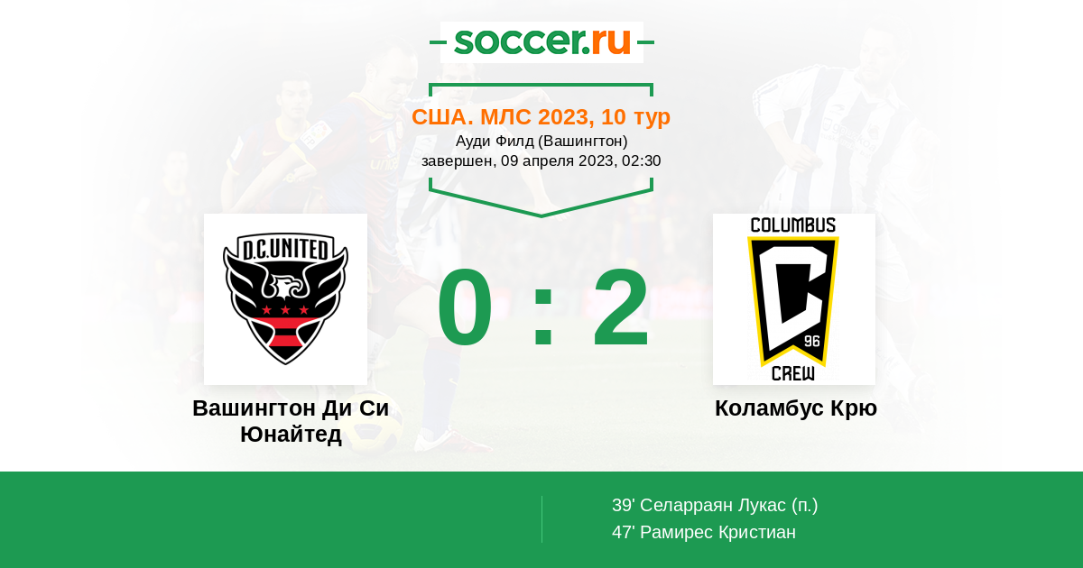 Протокол матча Вашингтон Ди Си Юнайтед против Коламбус Крю