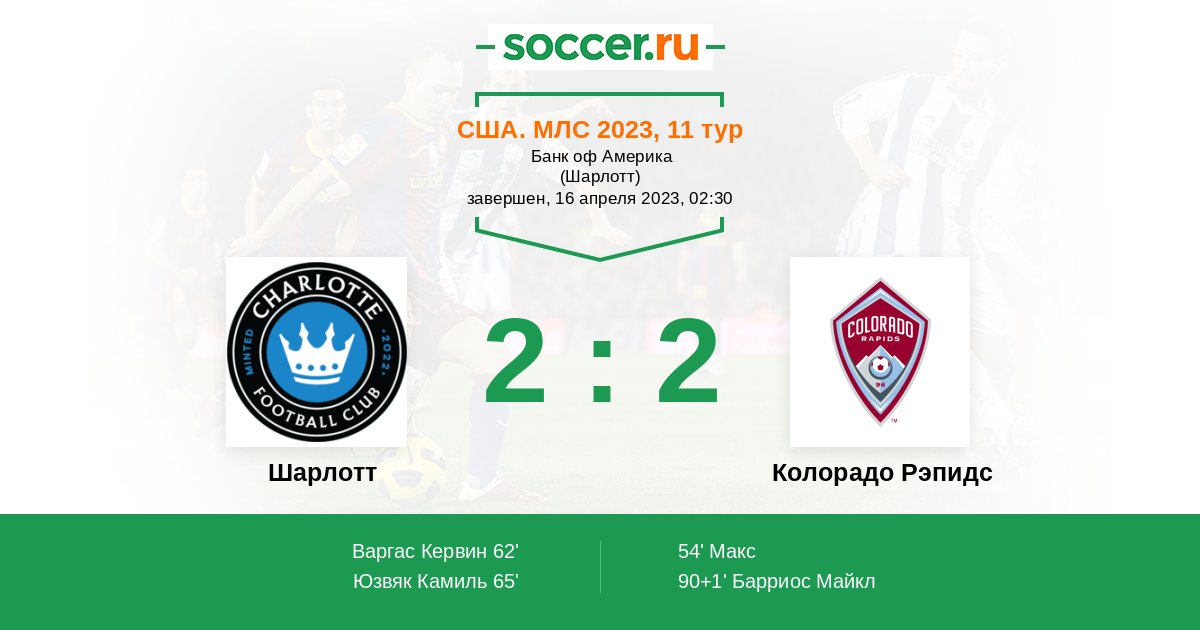 Протокол матча Шарлотт против Колорадо Рэпидс