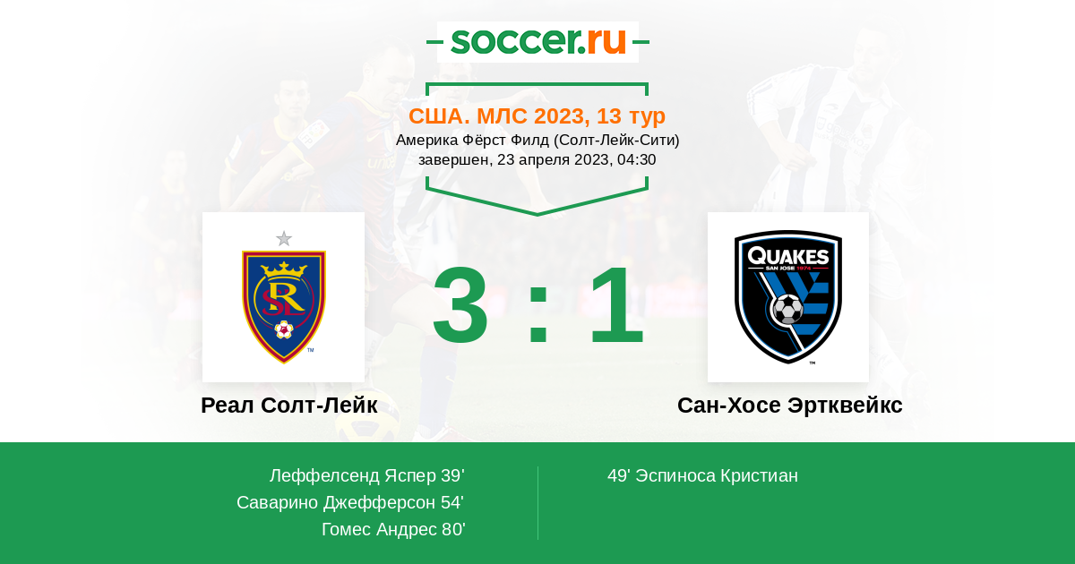 Протокол матча Реал Солт-Лейк против Сан-Хосе Эртквейкс
