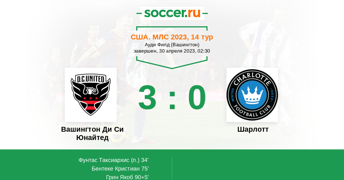 Протокол матча Вашингтон Ди Си Юнайтед против Шарлотт
