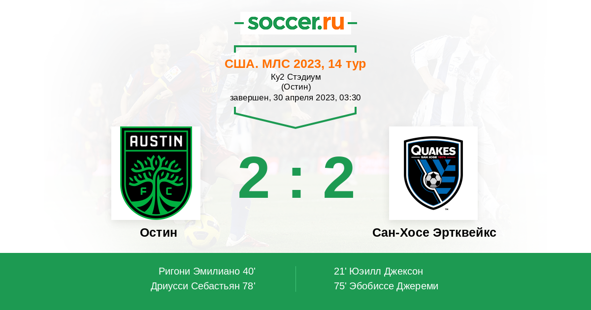 Протокол матча Остин против Сан-Хосе Эртквейкс