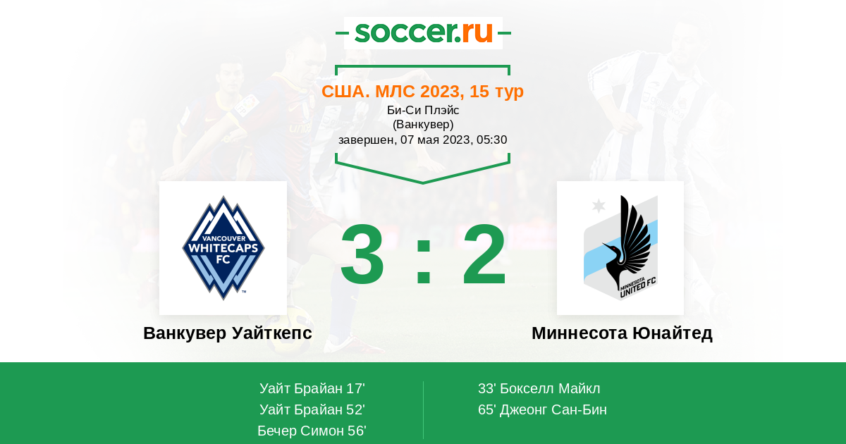 Протокол матча Ванкувер Уайткепс против Миннесота Юнайтед