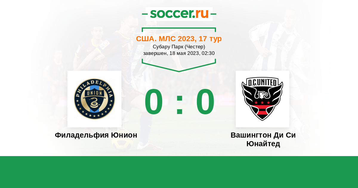 Протокол матча Филадельфия Юнион против Вашингтон Ди Си Юнайтед